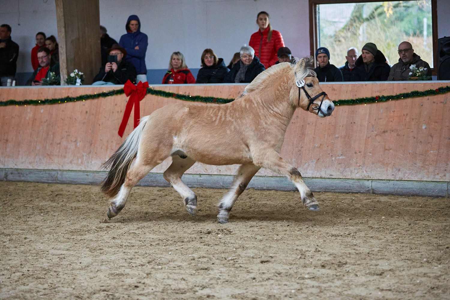 Die Züchter und Aussteller nahmen den Termin gut an und so konnte sich der Verband über 29 genannte Hengste aus neun verschiedenen Rassen freuen. Die Halle wurde der Jahreszeit entsprechend dekoriert und begrüßte Akteure und Publikum mit vorweihnachtlichem Flair.