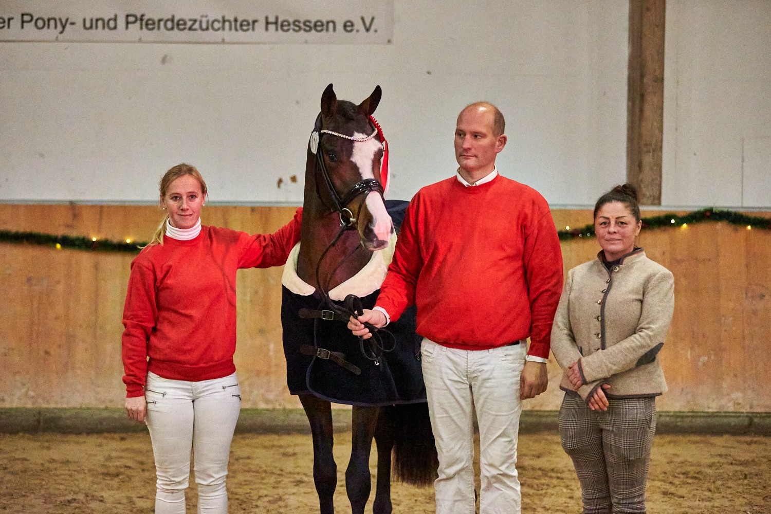 Dieser Hengst wurde aufgrund seiner Einzelnoten Sieger der Deutschen Reitponys, bester Springer und Tagessieger der Körung 2025. Dafür bekam er zusätzlich zu den beiden Schärpen noch einen Sonderehrenpreis in Form einer Stehlampe aus den Händen des Kommissionsmitgliedes Justina Rüffer.